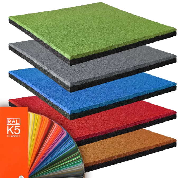 • Резиновая плитка 500х500х20 мм, двухслойная, цвет по RAL